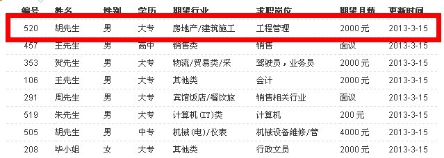 315.本站出現520編號幸運求職者,特贈送全年VIP,時間:2013.3.15-2014.3.15。